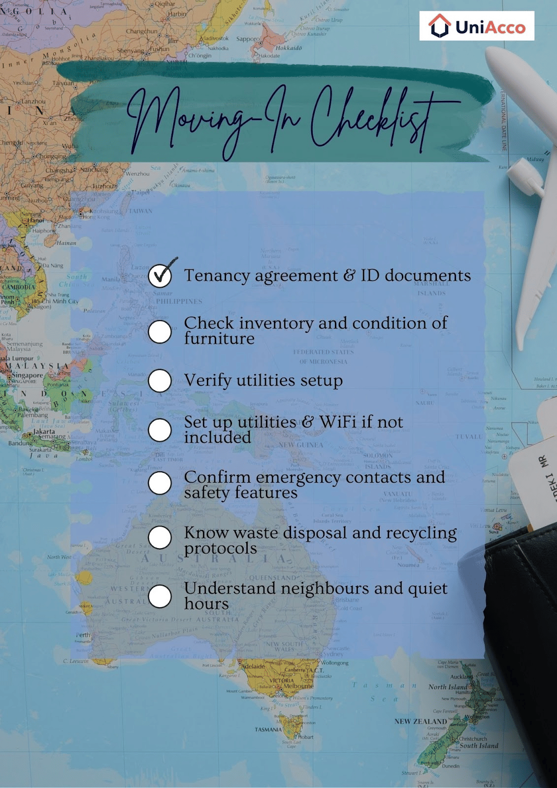 - Verify utilities setup (electricity, internet, gas, water).