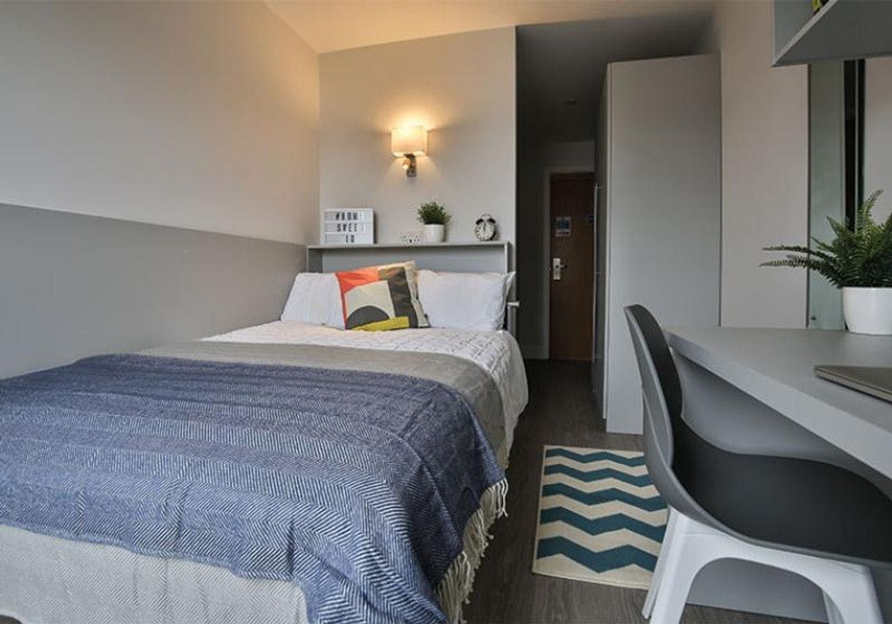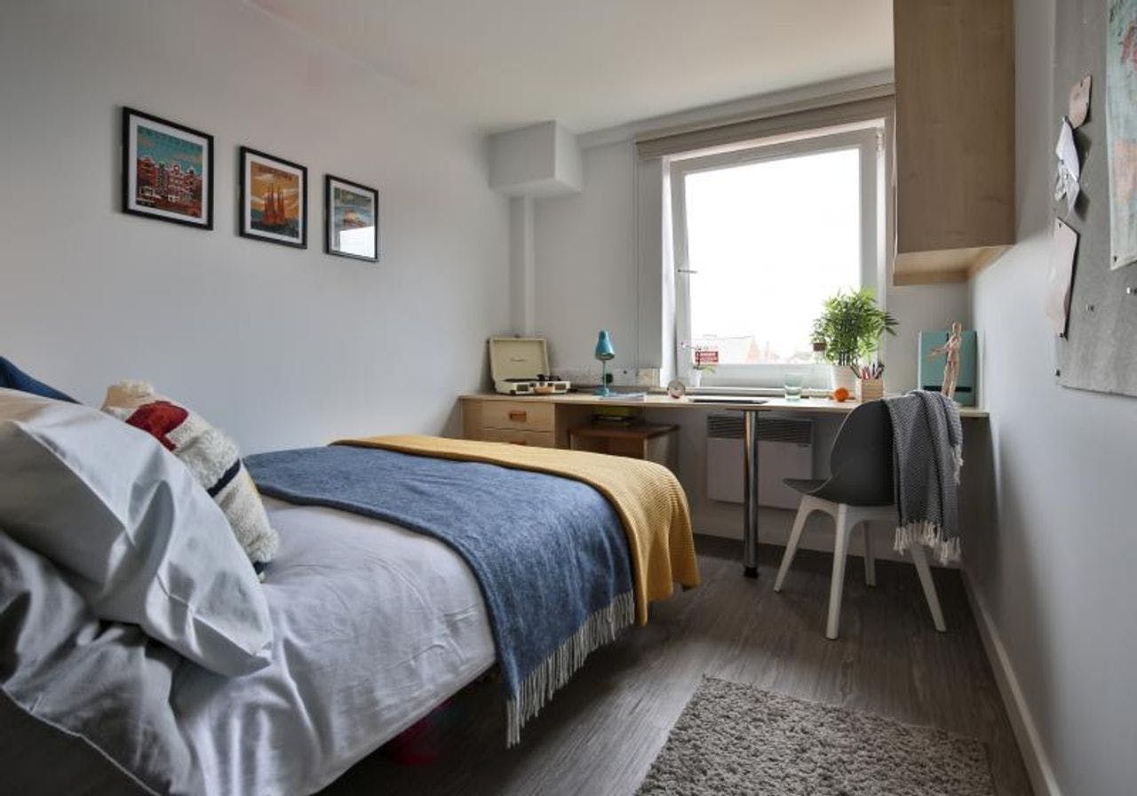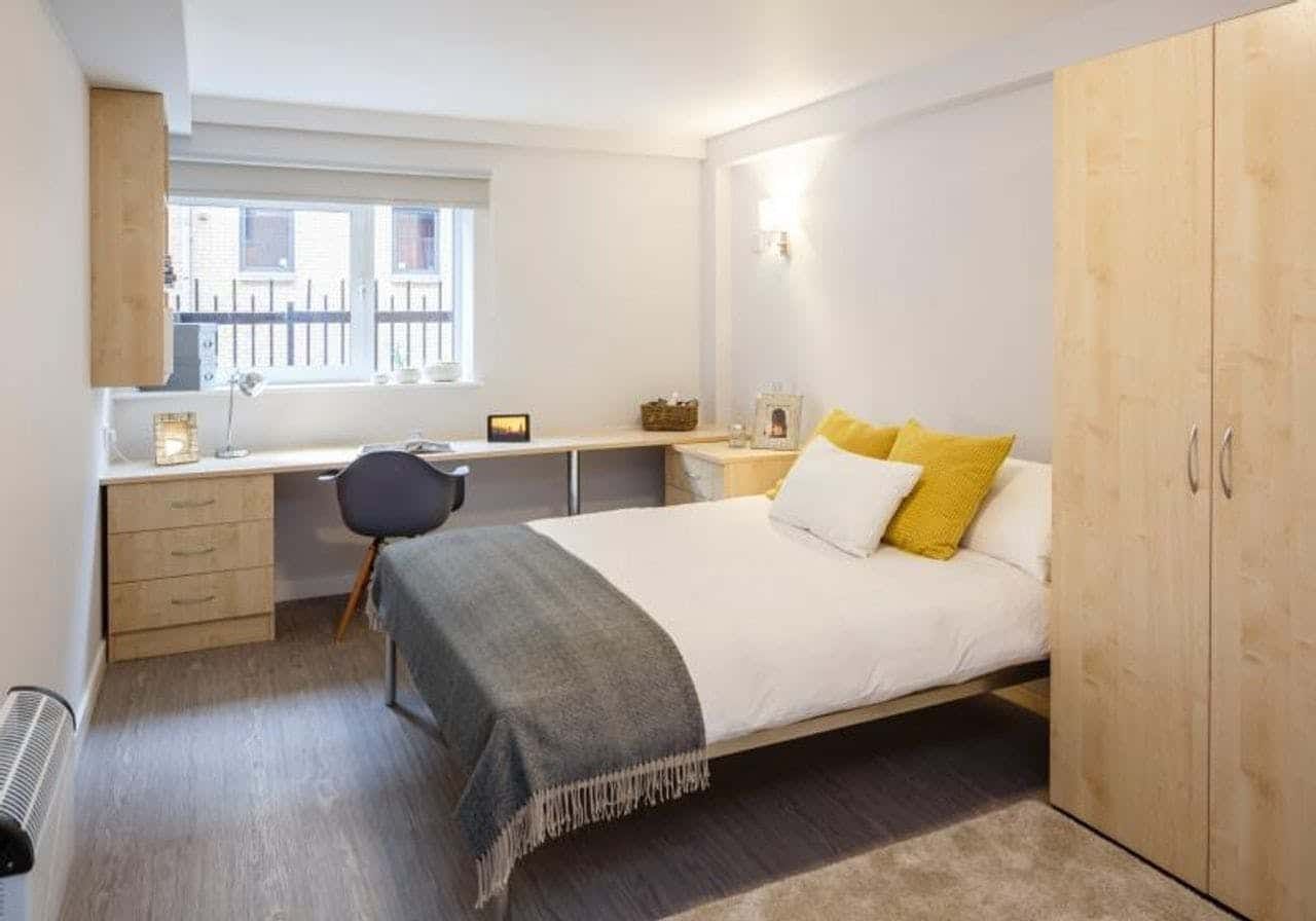 iQ Grosvenor House is the ideal student accommodation, especially if you’re a student at De Montfort University. De Montfort University and the University of Leicester are both within walking distance from the property. iQ Grosvenor House has one of the best en-suite rooms in terms of quality and cost. These rooms come with a private room, a shower, a small double bed and a TV in a shared kitchen/living space. Apart from this, the property offers an array of communal amenities such as a study area, a courtyard and a lounge with TV and games. On weekends, students can visit one of the various bars, restaurants and shops located near the property. Pretty Leicester hotspots like the River Soar and Castle Park are a definite must-visit!