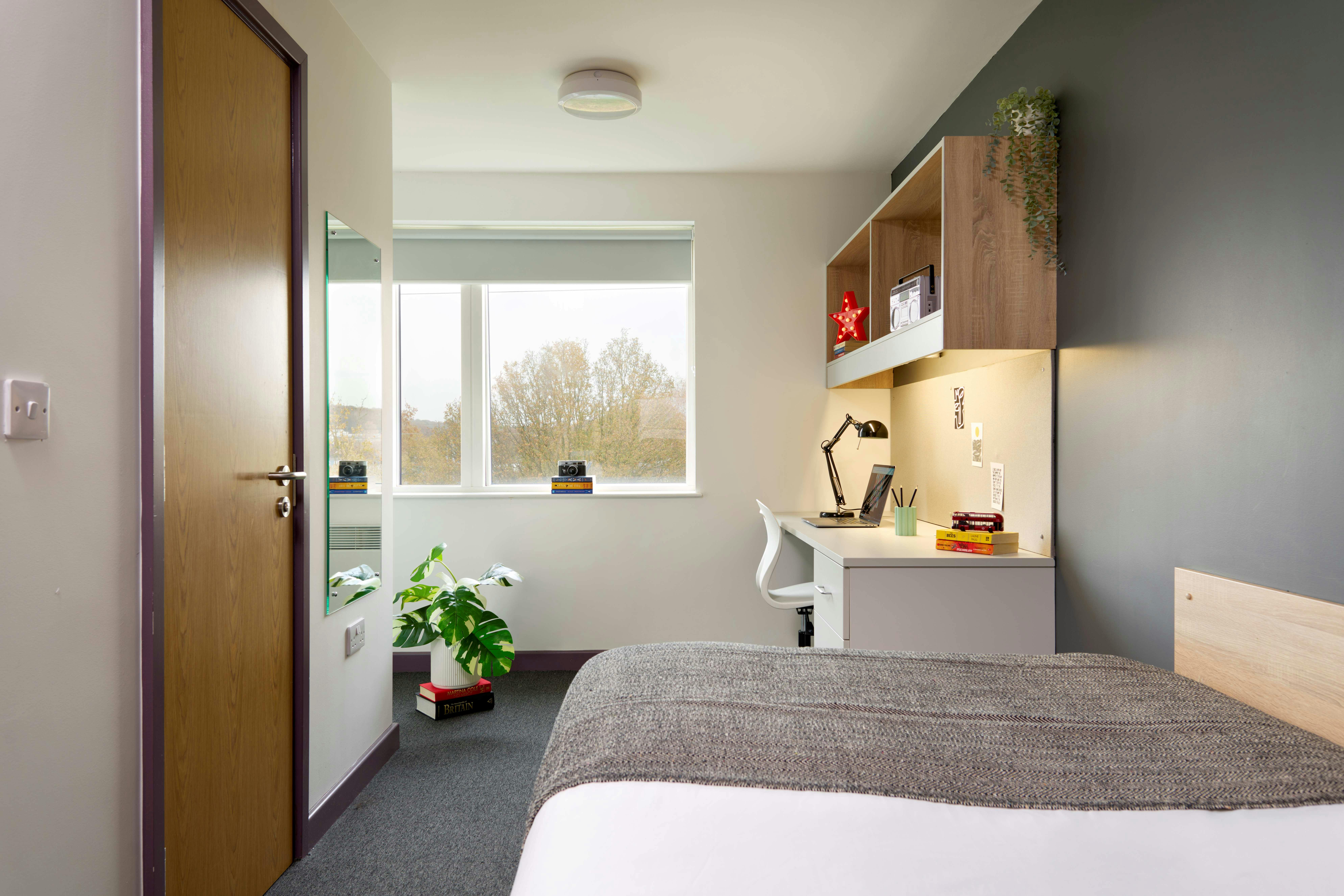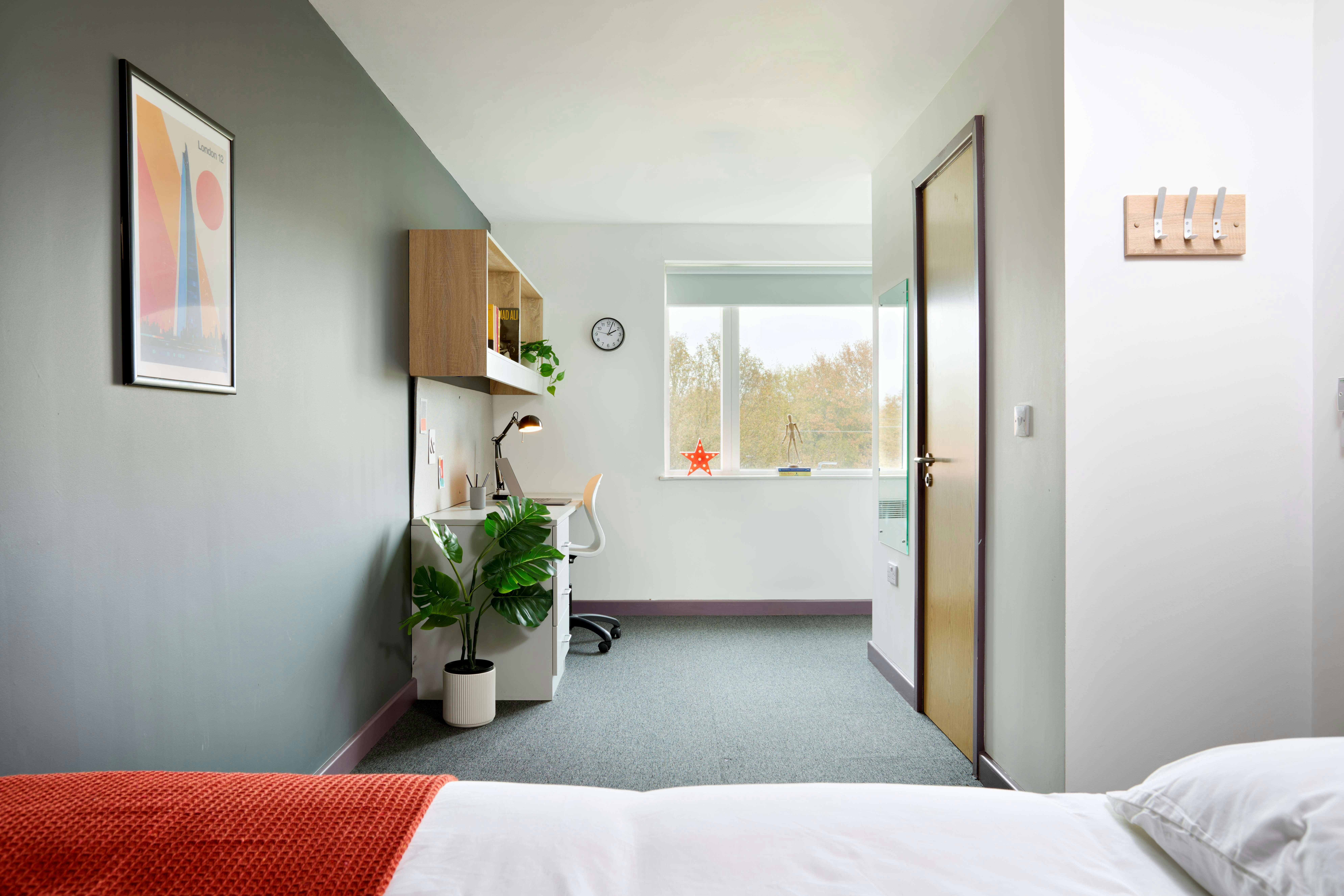 - Standard Ensuite Rooms: Stylish ensuite rooms with a small double bed, study desk, wardrobe, and access to shared kitchen and social facilities.