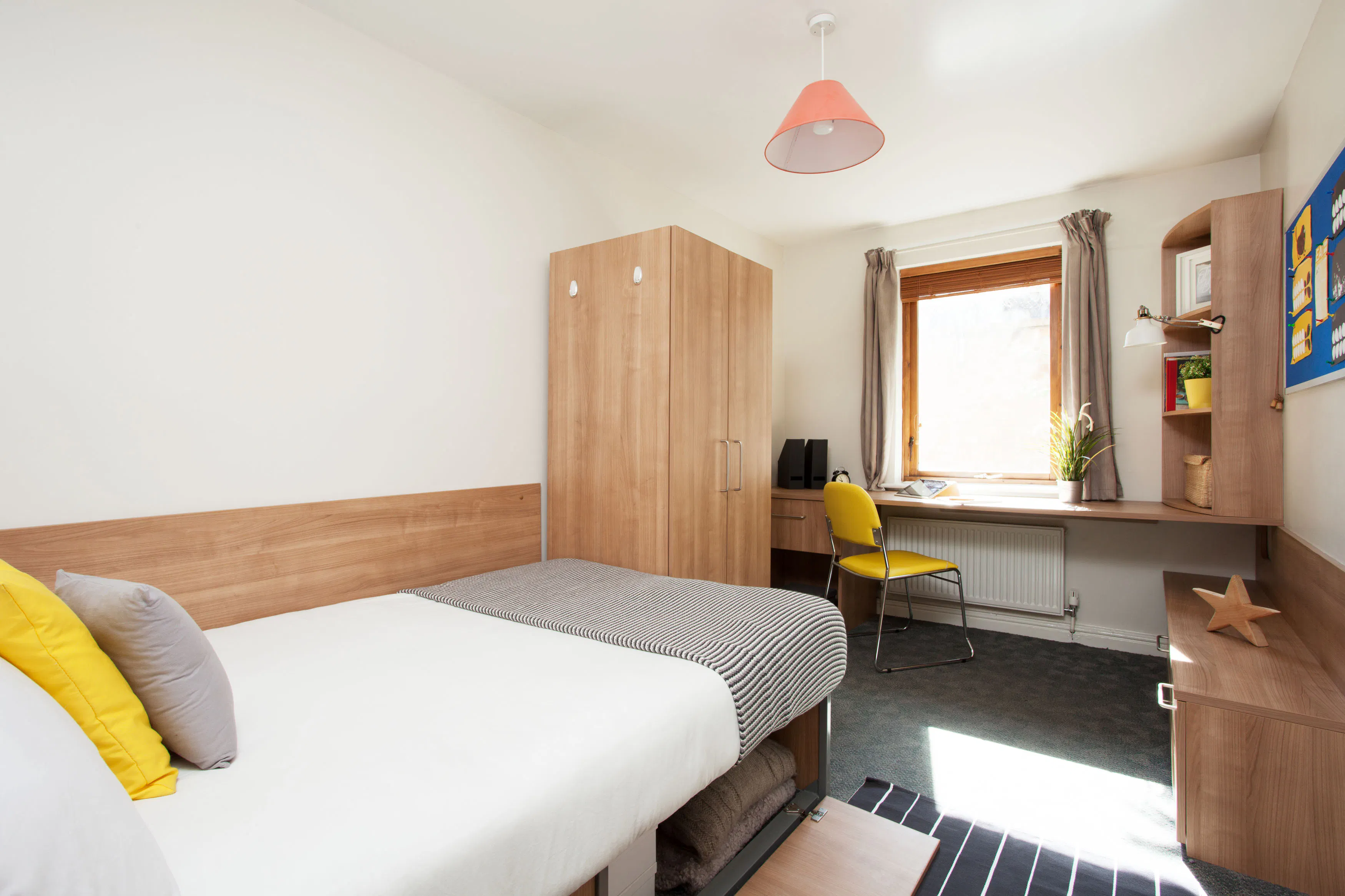 This modern student residence provides a variety of en-suite rooms, each thoughtfully designed to create a cosy, homelike environment equipped with all essential amenities.