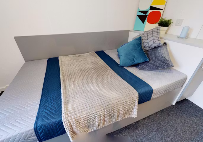 Experience modern living at iQ Century Square Sheffield, which is designed for comfort and convenience. Enjoy inclusive bills covering WiFi, heating, water, and electricity. Your room features free WiFi, a small double bed, a study desk, a wardrobe, storage, a mirror, and an ensuite with a shower and washbasin. Start your day at the breakfast bar, store essentials in the bedside cabinet, and stay organised with the noticeboard. Beyond your room, enjoy shared amenities like free WiFi, contents insurance, secure bicycle storage, a social hub, an onsite gym, dedicated study spaces, and a cinema room. Your safety is ensured with CCTV and 24/7 security. Please note pets are not allowed. At iQ Century Square, room features, communal amenities, and security measures create an exceptional living experience.